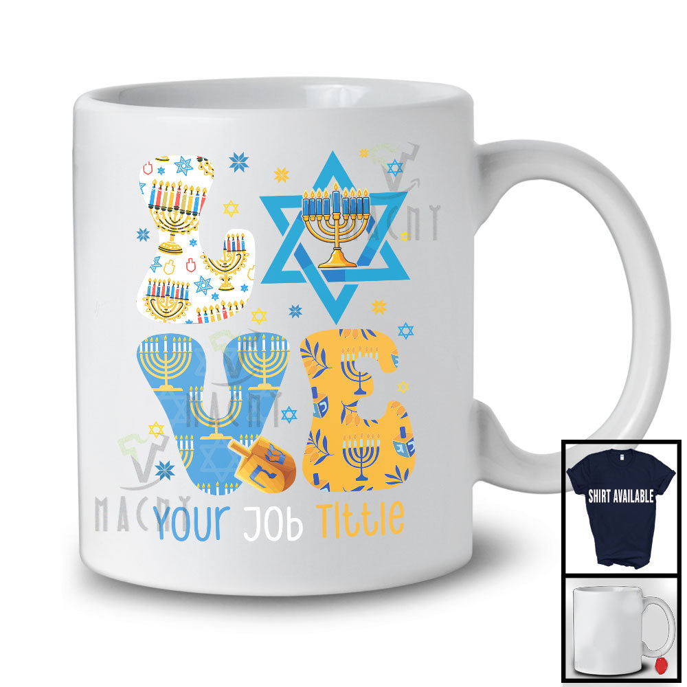 Personalized Custom Job Title LOVE; Awesome Hanukkah Menorah Lover; Family Group T-Shirt