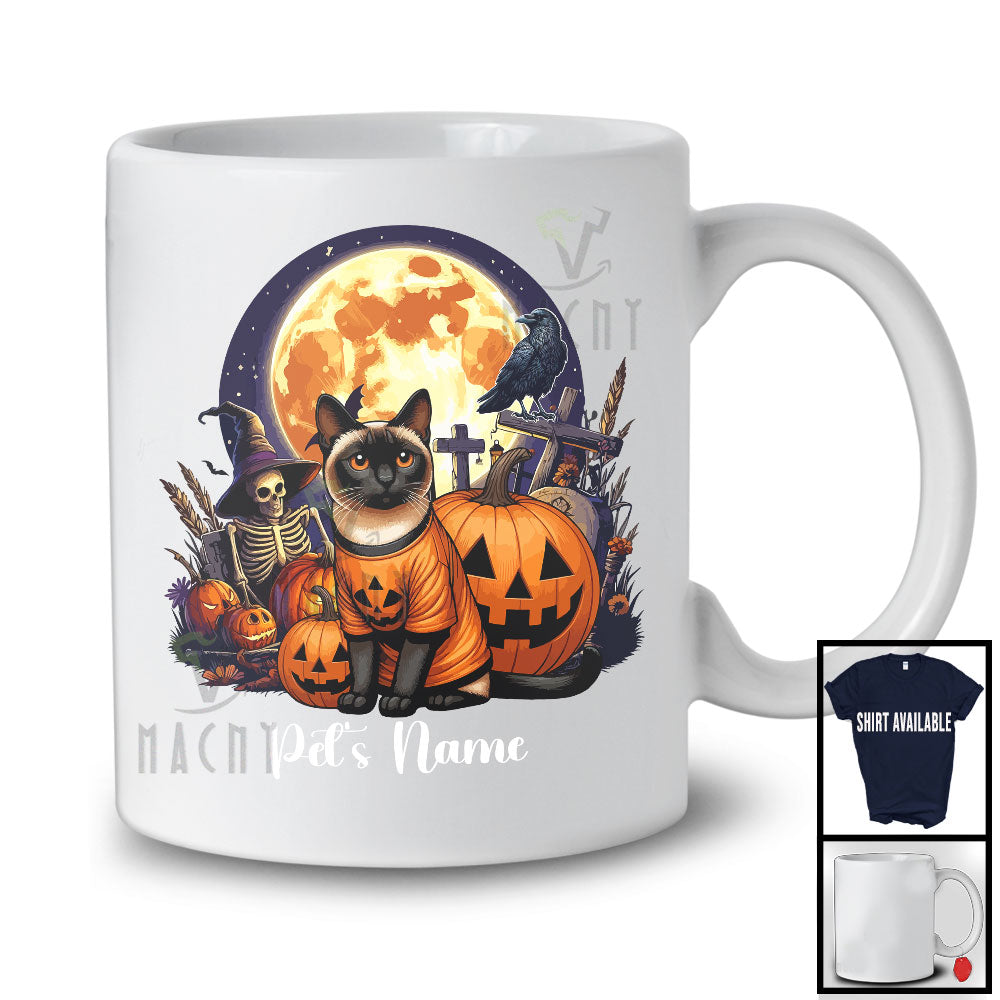 new MacnyStore - Personalized Custom Kitten's Name Siamese Cat, Lovely Halloween Skeleton Pumpkins T-Shirt – Macnystore