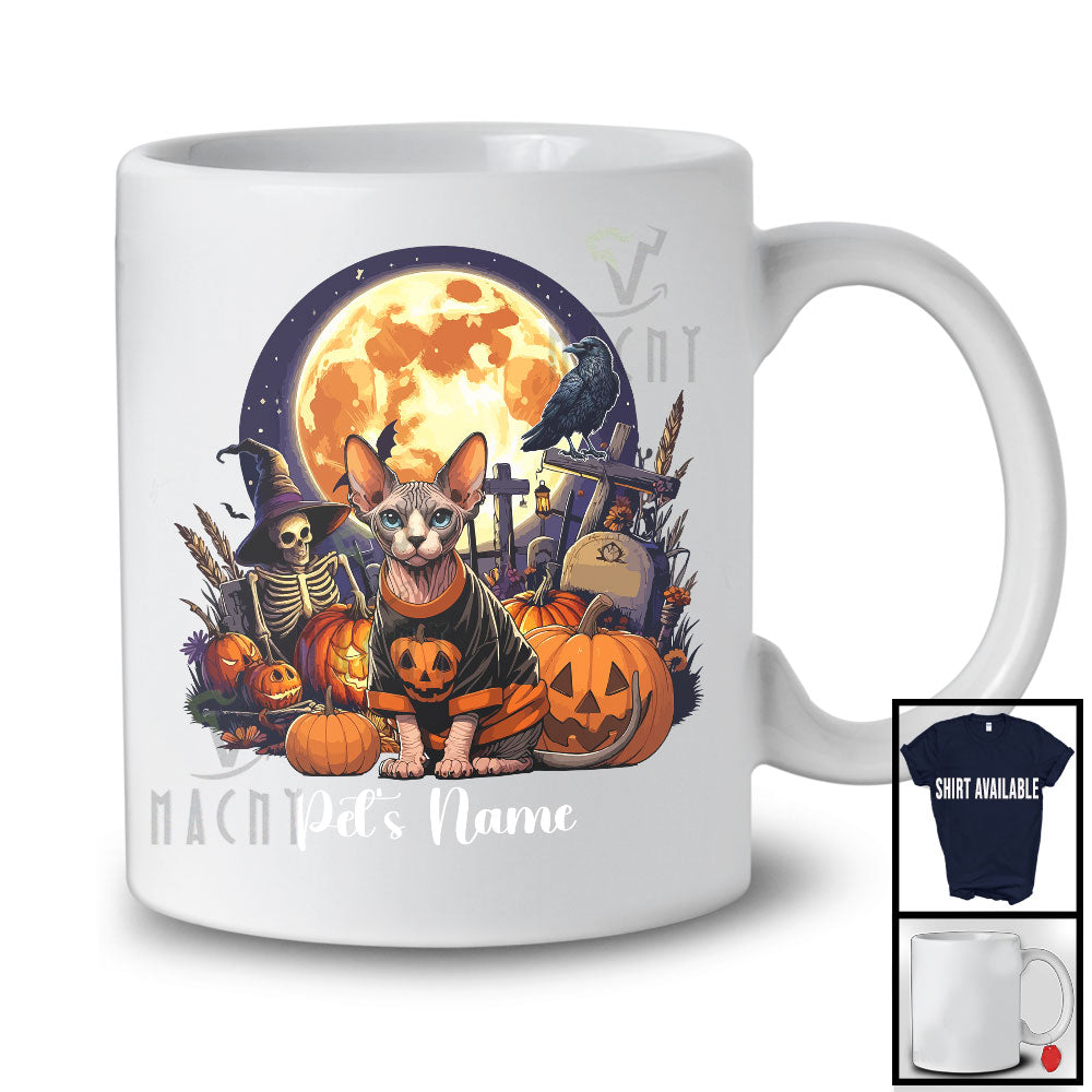 new MacnyStore - Personalized Custom Kitten's Name Sphynx Cat, Lovely Halloween Skeleton Pumpkins T-Shirt – Macnystore