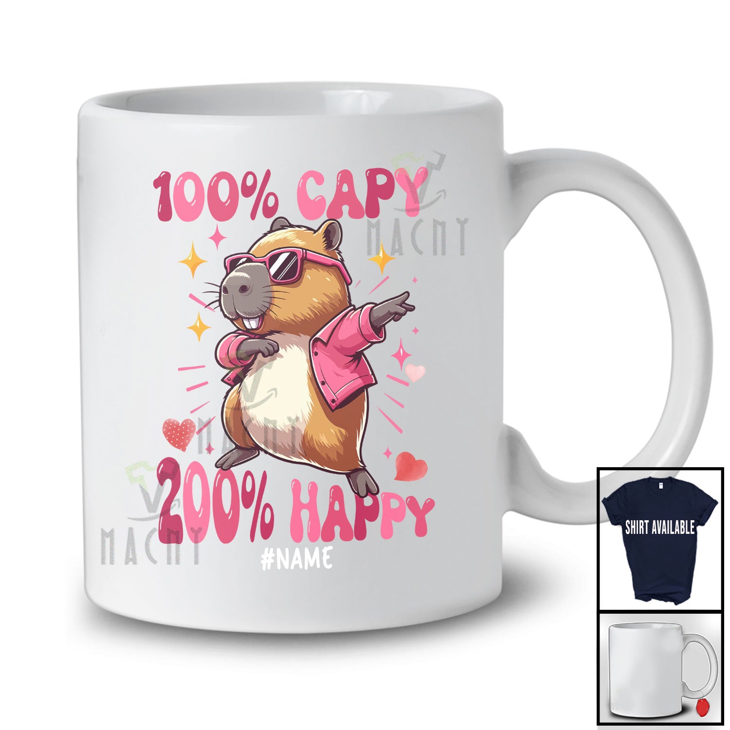 This Personalized Custom Name 100' Capy 200' Happy; Adorable Capybara Rodent; Girls Family T-Shirt is great idea gift for your family, friends in this birthday, christmas, mother's day, father's day, patrick's day or any holiday.