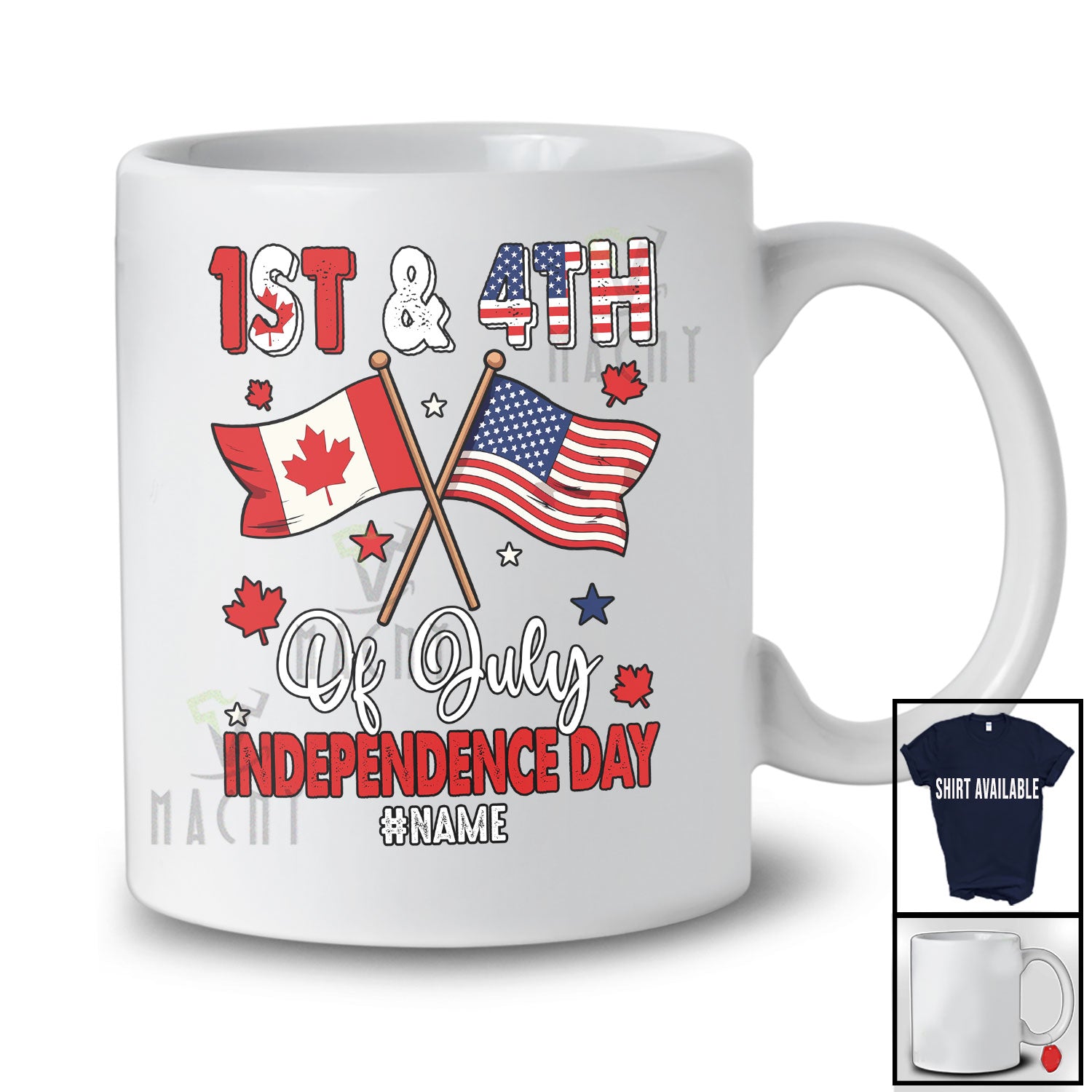 Personalized Custom Name 1st & 4th Of July Independence Day; Proud Canadian US Flag; Patriotic T-Shirt. This cotton t-shirt is a durable staple product with a classic fit. One of the most popular items, it has a relaxed style made for everyday and casual wear.