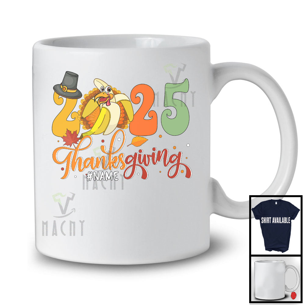 Personalized Custom Name 2025 Thanksgiving; Lovely Banana Turkey Fruit Vegan; Family Group T-Shirt