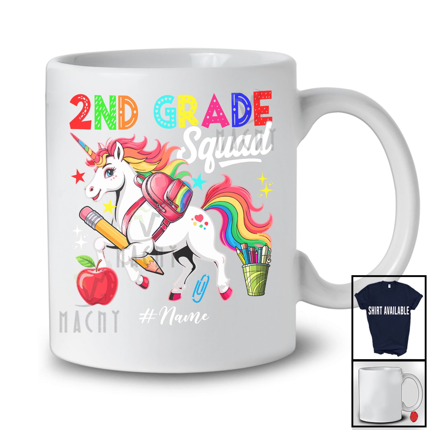• Personalized Custom Name 2nd Grade Squad; Lovely First Day Of School Student Teacher Unicorn T-Shirt. This cotton t-shirt is a durable staple product with a classic fit. One of the most popular items, it has a relaxed style made for everyday and casual wear.