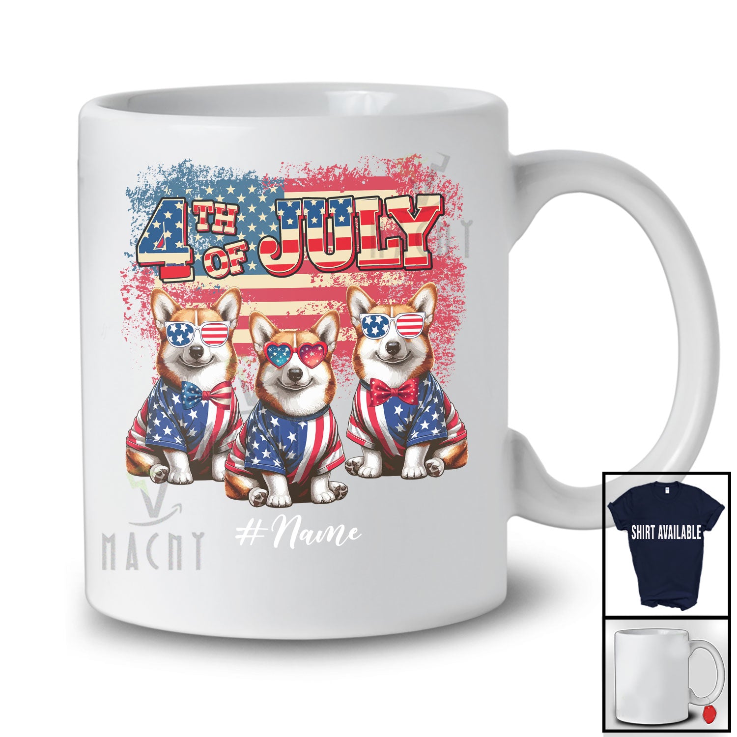 Personalized Custom Name 4th Of July; Lovely US Flag Corgi Owner; Patriotic T-Shirt. This cotton t-shirt is a durable staple product with a classic fit. One of the most popular items, it has a relaxed style made for everyday and casual wear.