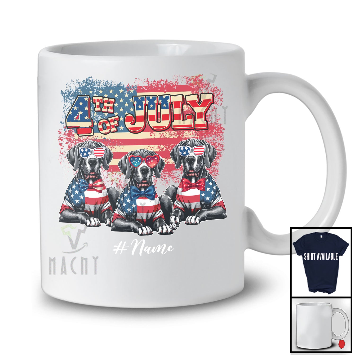 Personalized Custom Name 4th Of July; Lovely US Flag Great Dane Owner; Patriotic T-Shirt. This cotton t-shirt is a durable staple product with a classic fit. One of the most popular items, it has a relaxed style made for everyday and casual wear.