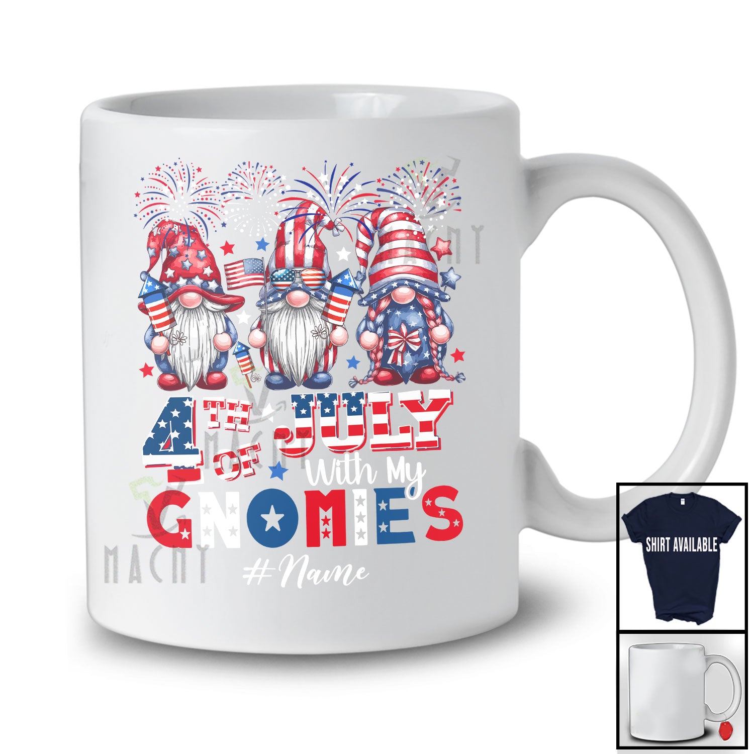 • Personalized Custom Name 4th of July with my Gnomies; Cheerful Three USA Gnomes; Patriotic T-Shirt. This cotton t-shirt is a durable staple product with a classic fit. One of the most popular items, it has a relaxed style made for everyday and casual wear.