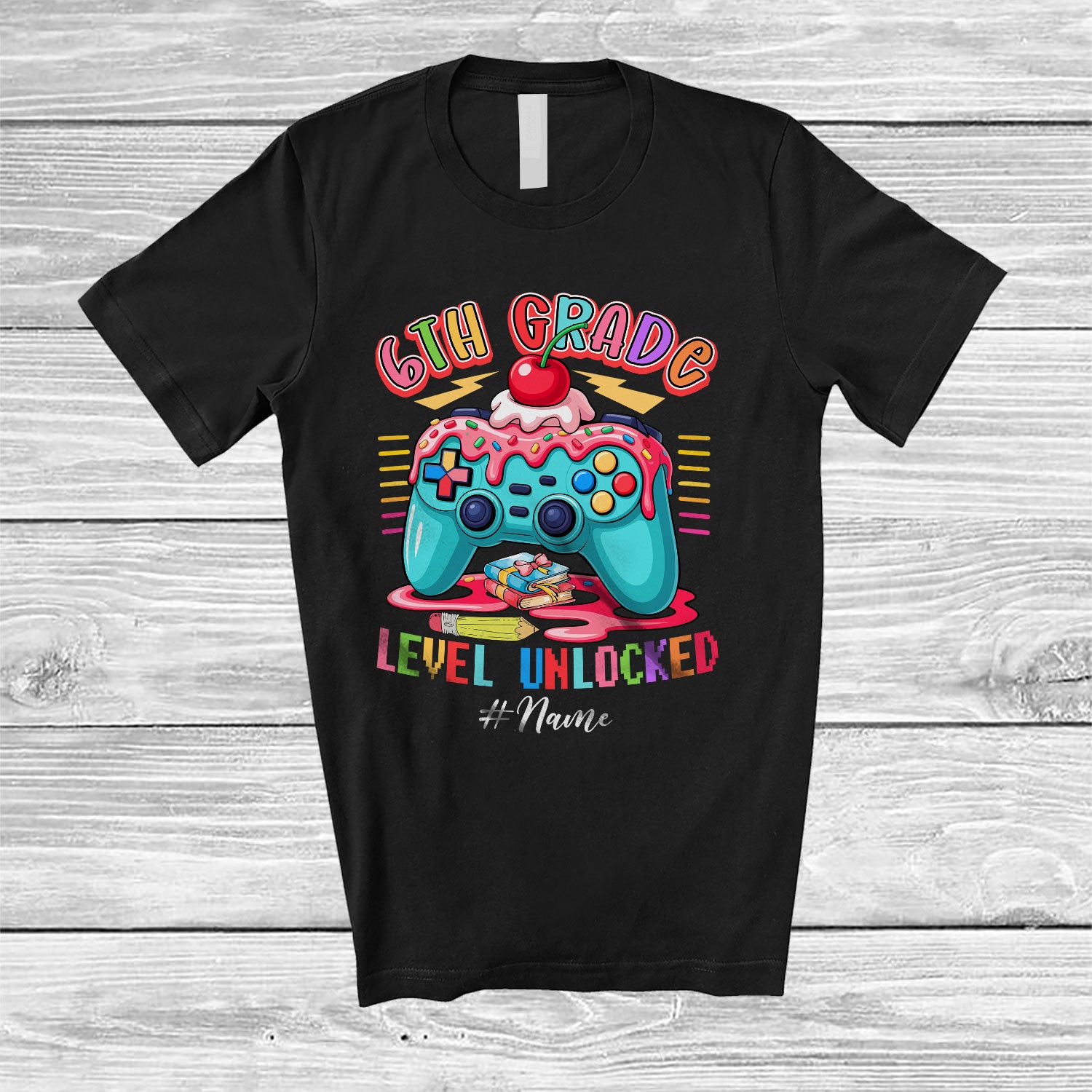Personalized Custom Name 6th Grade Level Unlocked; Joyful Back To School First Day Of School Gamer T-Shirt