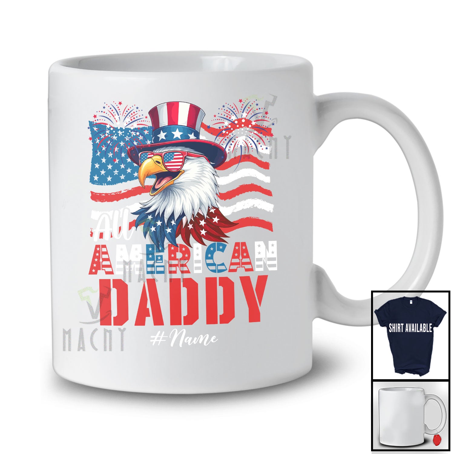 new MacnyStore - Personalized Custom Name All American Daddy; Lovely 4th Of July US Flag Eagle; Patriotic Family T-Shirt – Macnystore