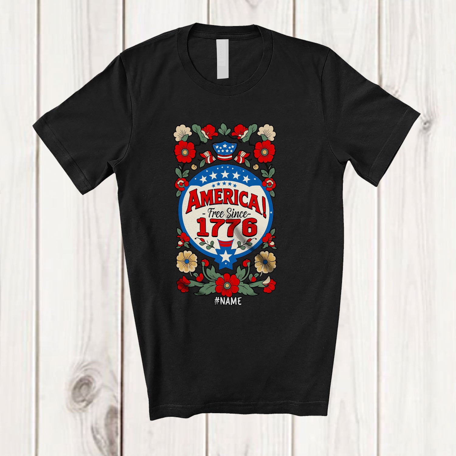 Every product is unique, just like you. If you're looking for a product that fits the mold of your life, the Personalized Custom Name America Free Since 1776; Lovely 4th of July Floral Flowers Patriotic T-Shirt is for you.