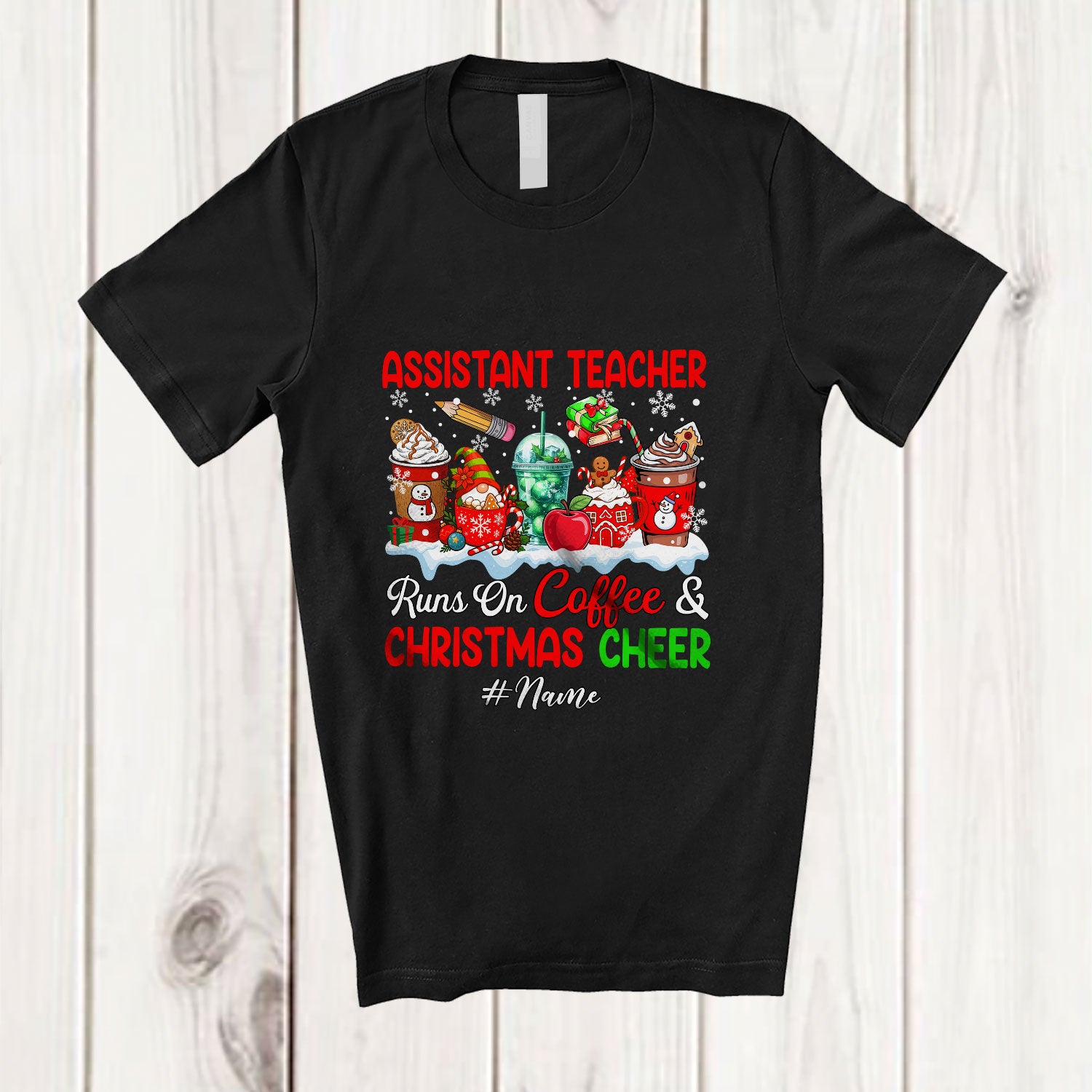 Personalized Custom Name Assistant Teacher Runs On Coffee Christmas Cheer; Lovely Snow Jobs T-Shirt