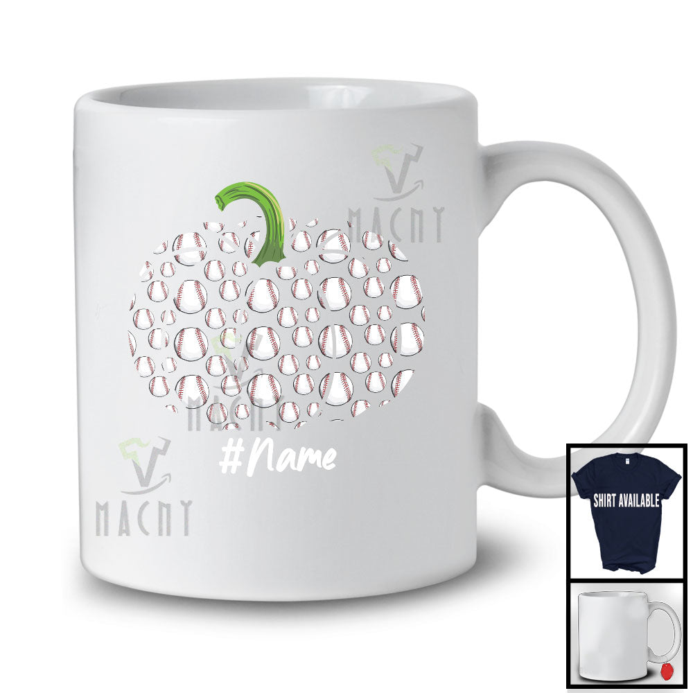 Personalized Custom Name Autumn Baseball Pumpkin Shape; Amazing Thanksgiving Halloween T-Shirt. This cotton t-shirt is a durable staple product with a classic fit. One of the most popular items, it has a relaxed style made for everyday and casual wear.