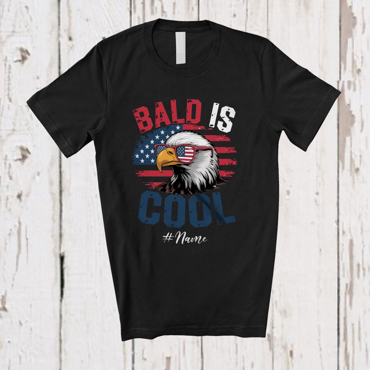 Personalized Custom Name Bald Is Cool; Amazing 4th of July Day American Flag Eagle Patriotic T-Shirt
