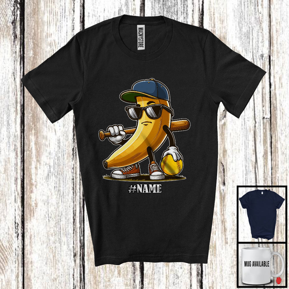 Personalized Custom Name Banana Sunglasses Playing Softball, Lovely Softball Player Team T-Shirt