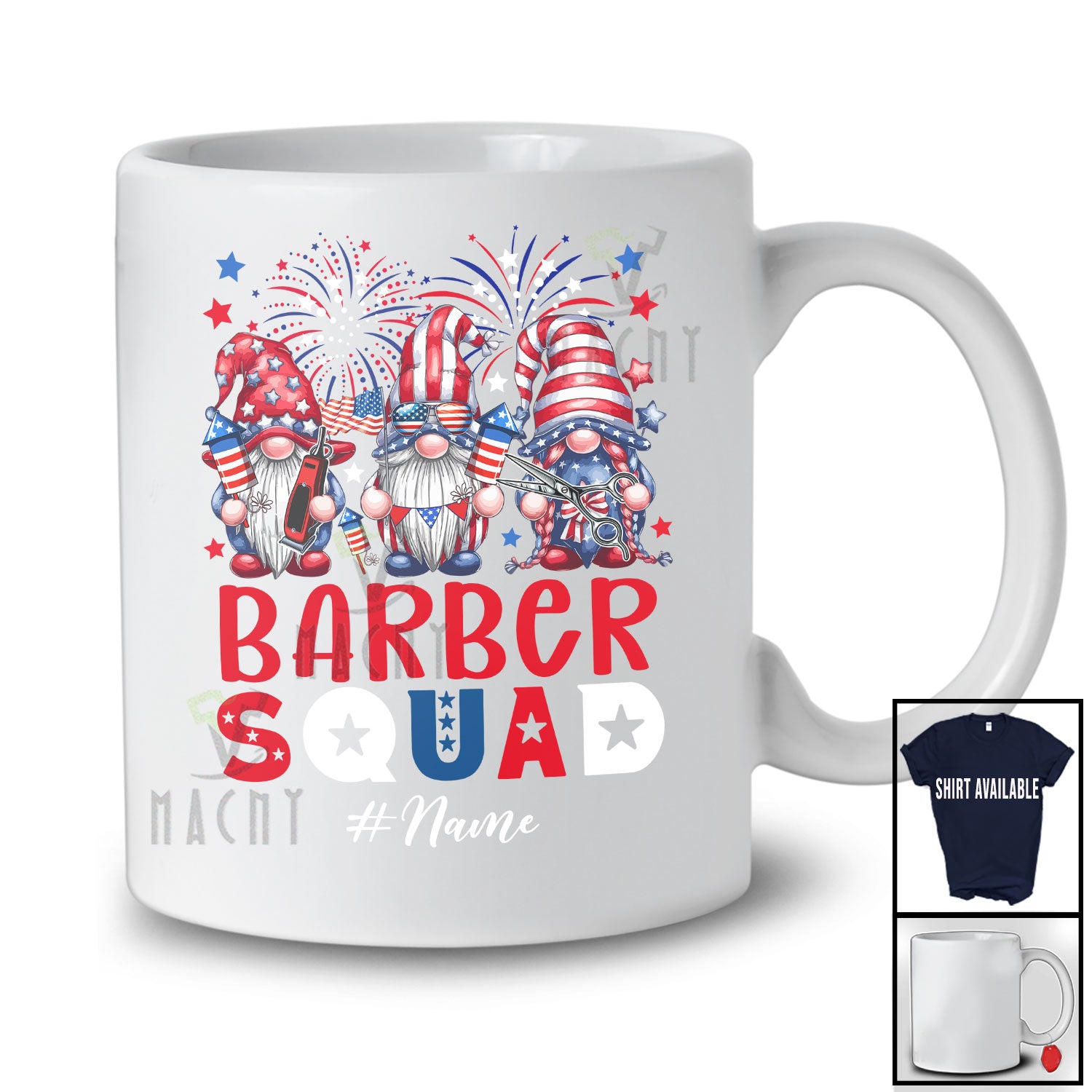 Every product is unique, just like you. If you're looking for a product that fits the mold of your life, the Personalized Custom Name Barber Squad; Adorable 4th Of July Three Patriotic Gnomes T-Shirt is for you.