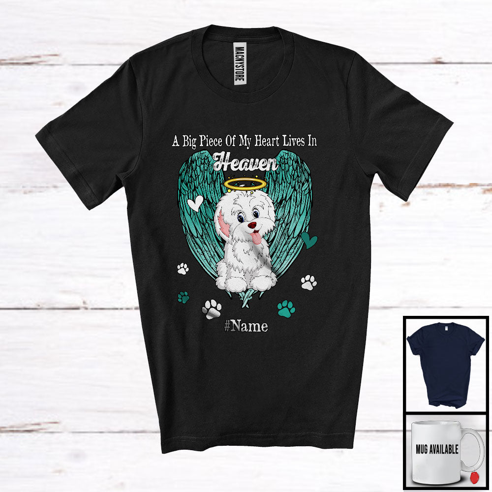 Personalized Custom Name Big Piece Of Heart In Heaven, Lovely Memories Bichon Frise Lover T-Shirt