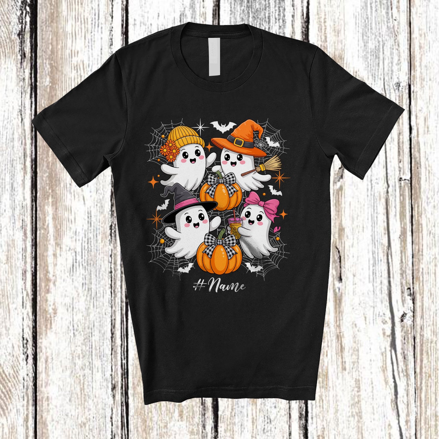 Personalized Custom Name Boo Ghost Coquette Bow Pumpkin; Lovely Halloween Boo Squad; Family T-Shirt