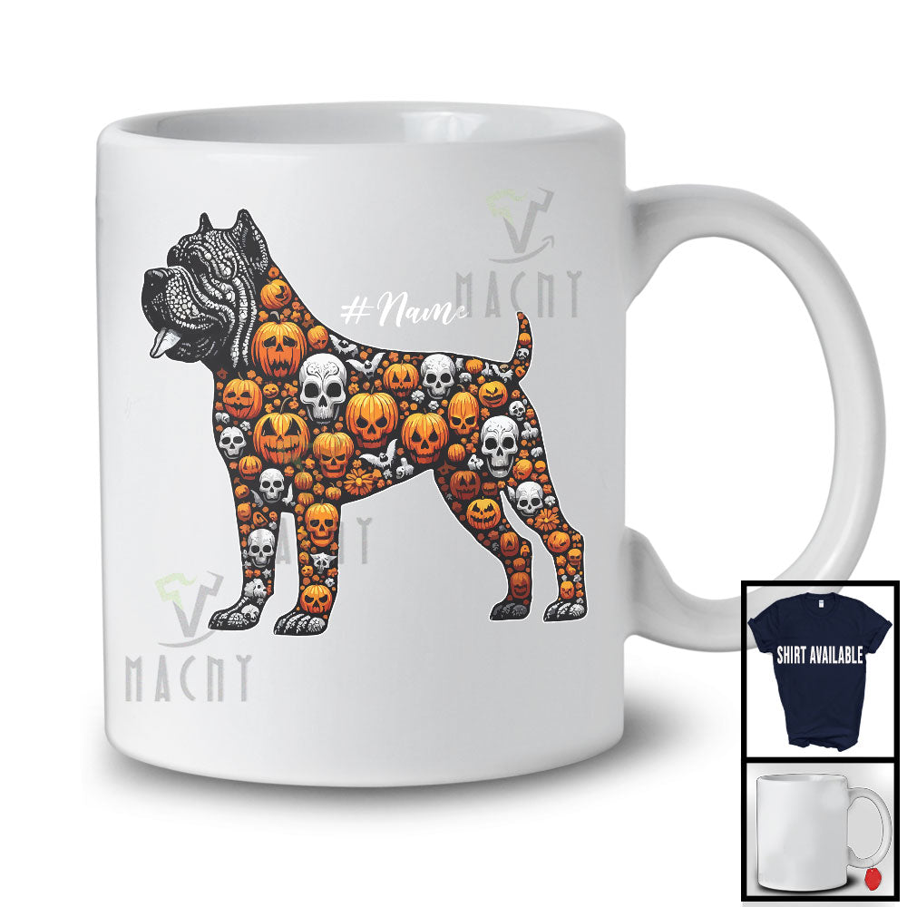 Personalized Custom Name Cane Corso Skull Pumpkin Shape; Creepy Halloween Animal Lover T-Shirt