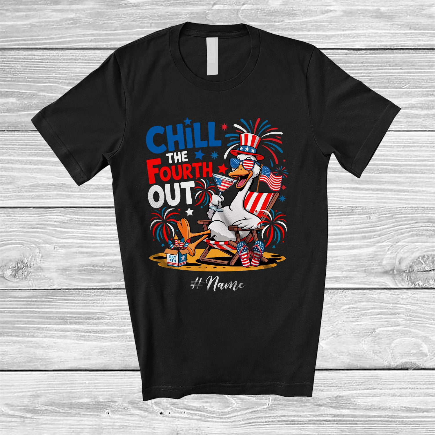 Personalized Custom Name Chill The Fourth Out; Humorous 4th of July US Flag Goose; Patriotic T-Shirt