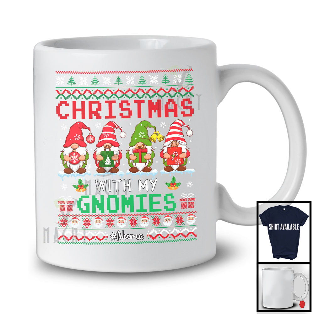 • Personalized Custom Name Christmas With My Gnomies; Amusing Christmas Sweater 4 Gnomes T-Shirt. This cotton t-shirt is a durable staple product with a classic fit. One of the most popular items, it has a relaxed style made for everyday and casual wear.