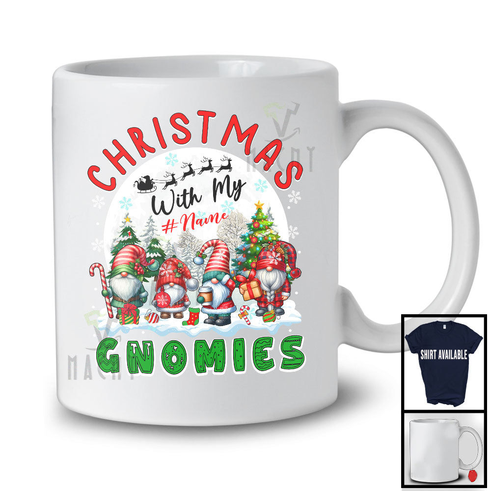 Personalized Custom Name Christmas With My Gnomies; Lovely Four Gnomes Gnomies; Snowing T-Shirt