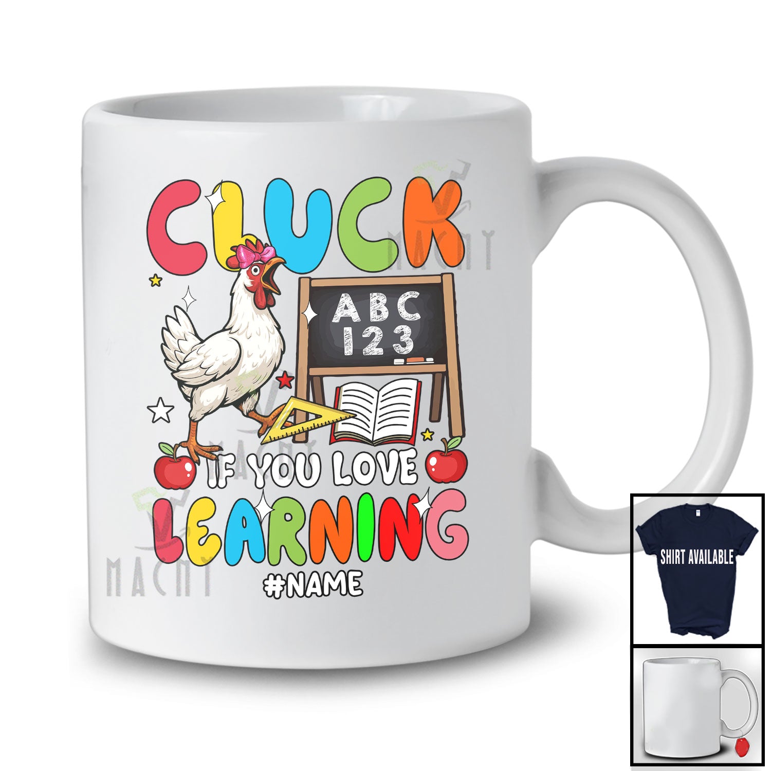 This Personalized Custom Name Cluck If You Love Learning; Lovely Back To School Chicken Teacher T-Shirt is great idea gift for your family, friends in this birthday, christmas, mother's day, father's day, patrick's day or any holiday.
