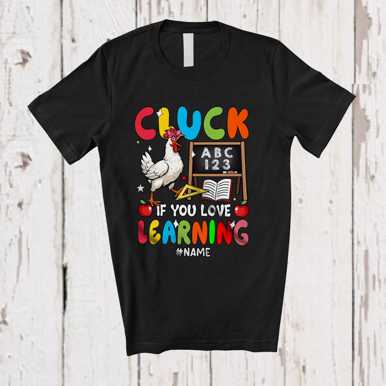 Personalized Custom Name Cluck If You Love Learning; Lovely Back To School Chicken Teacher T-Shirt
