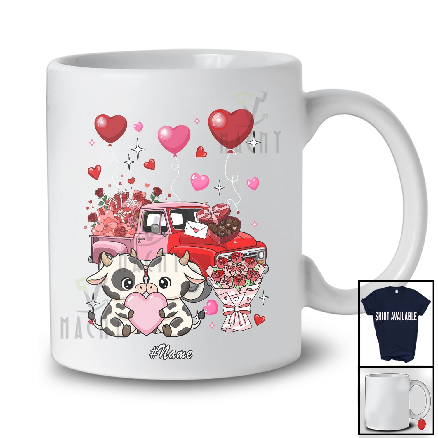 Every product is unique, just like you. If you're looking for a product that fits the mold of your life, the Personalized Custom Name Couple Pink Cow With Pickup Truck; Amusing Valentine Hearts Couple T-Shirt is for you.
