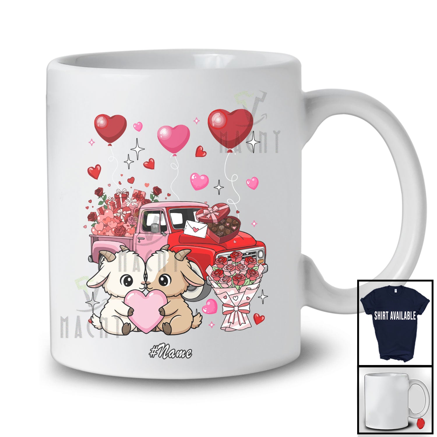 This Personalized Custom Name Couple Pink Goat With Pickup Truck; Amusing Valentine Hearts Couple T-Shirt is great idea gift for your family, friends in this birthday, christmas, mother's day, father's day, patrick's day or any holiday.