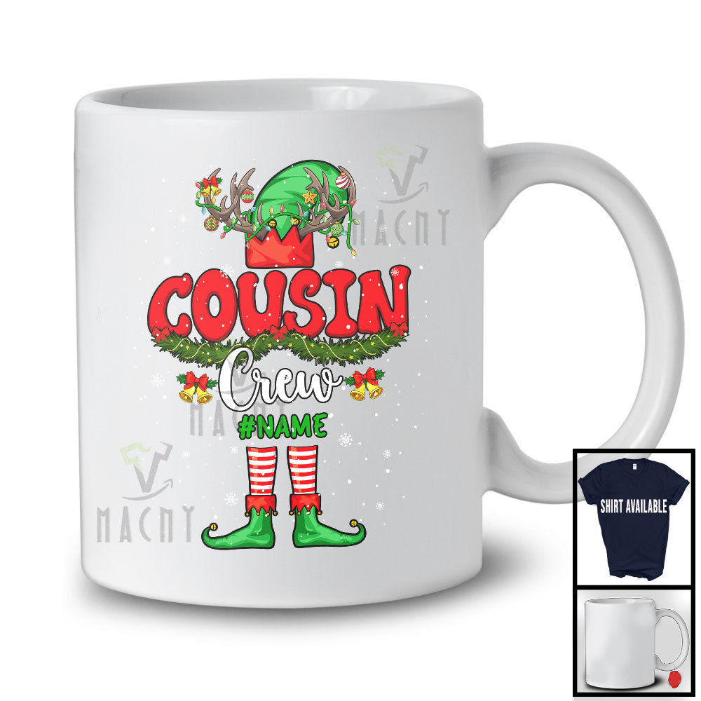Personalized Custom Name Cousin Crew; Amazing Christmas Plaid Elf; Family X-mas Group T-Shirt