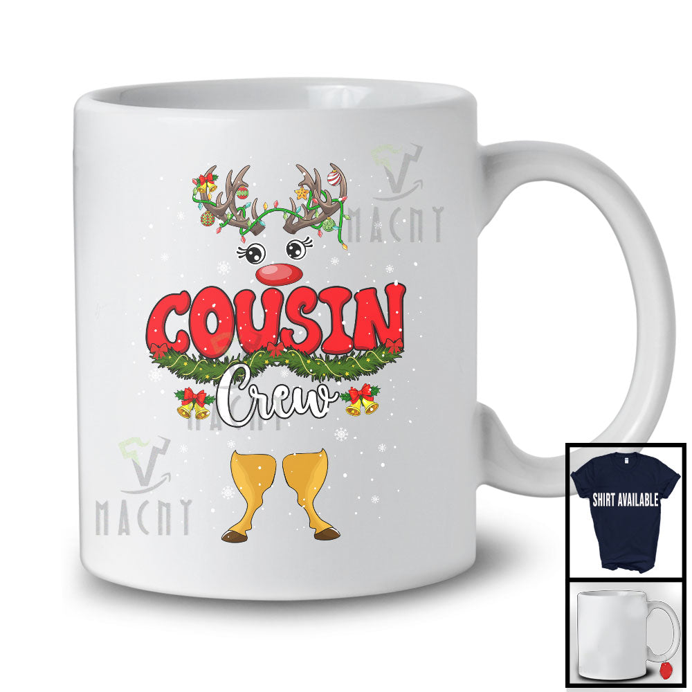 Personalized Custom Name Cousin Crew; Amazing Christmas Plaid Reindeer; Family X-mas Group T-Shirt