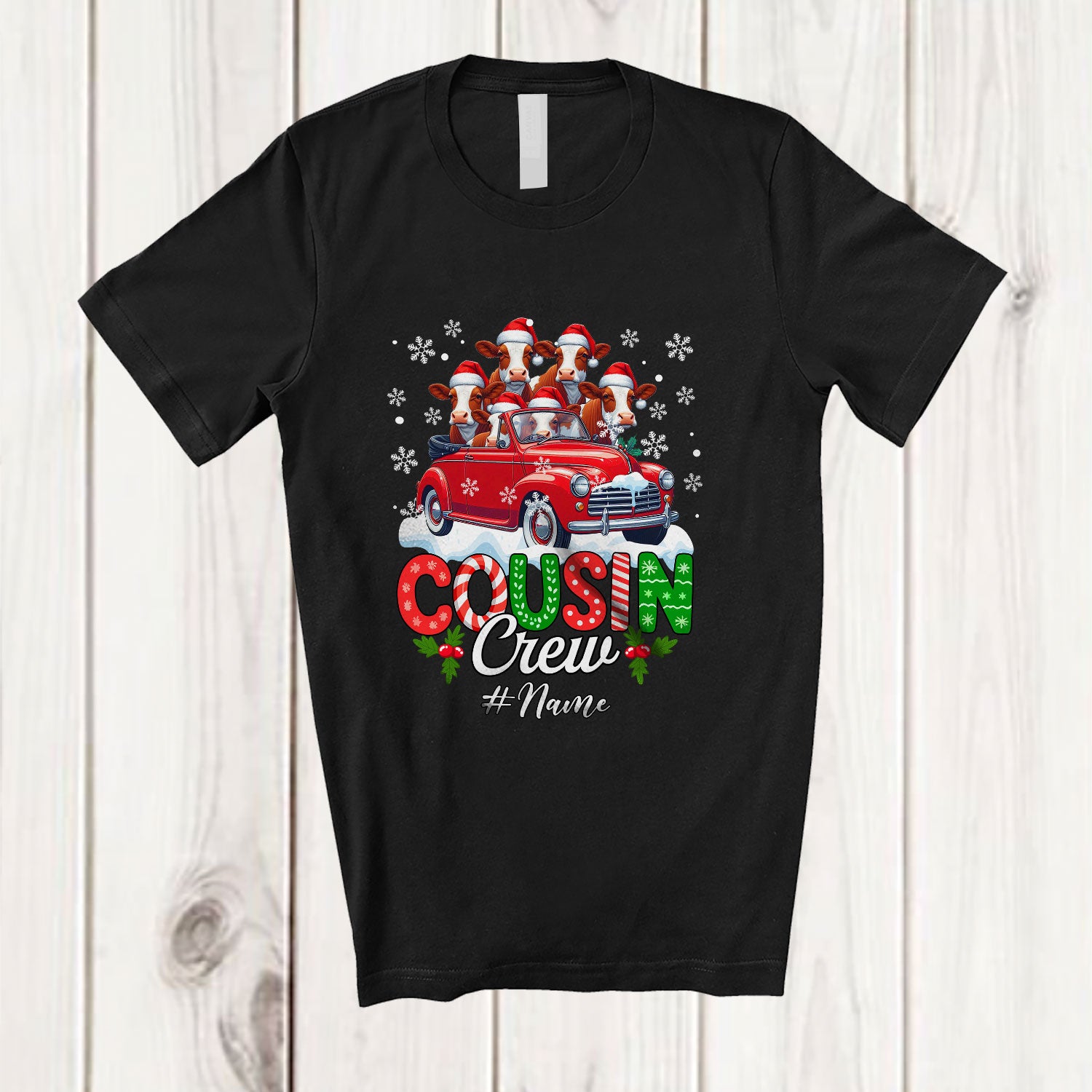 Personalized Custom Name Cousin Crew; Lovely Christmas Cow On Pickup Truck; Farmer Family T-Shirt