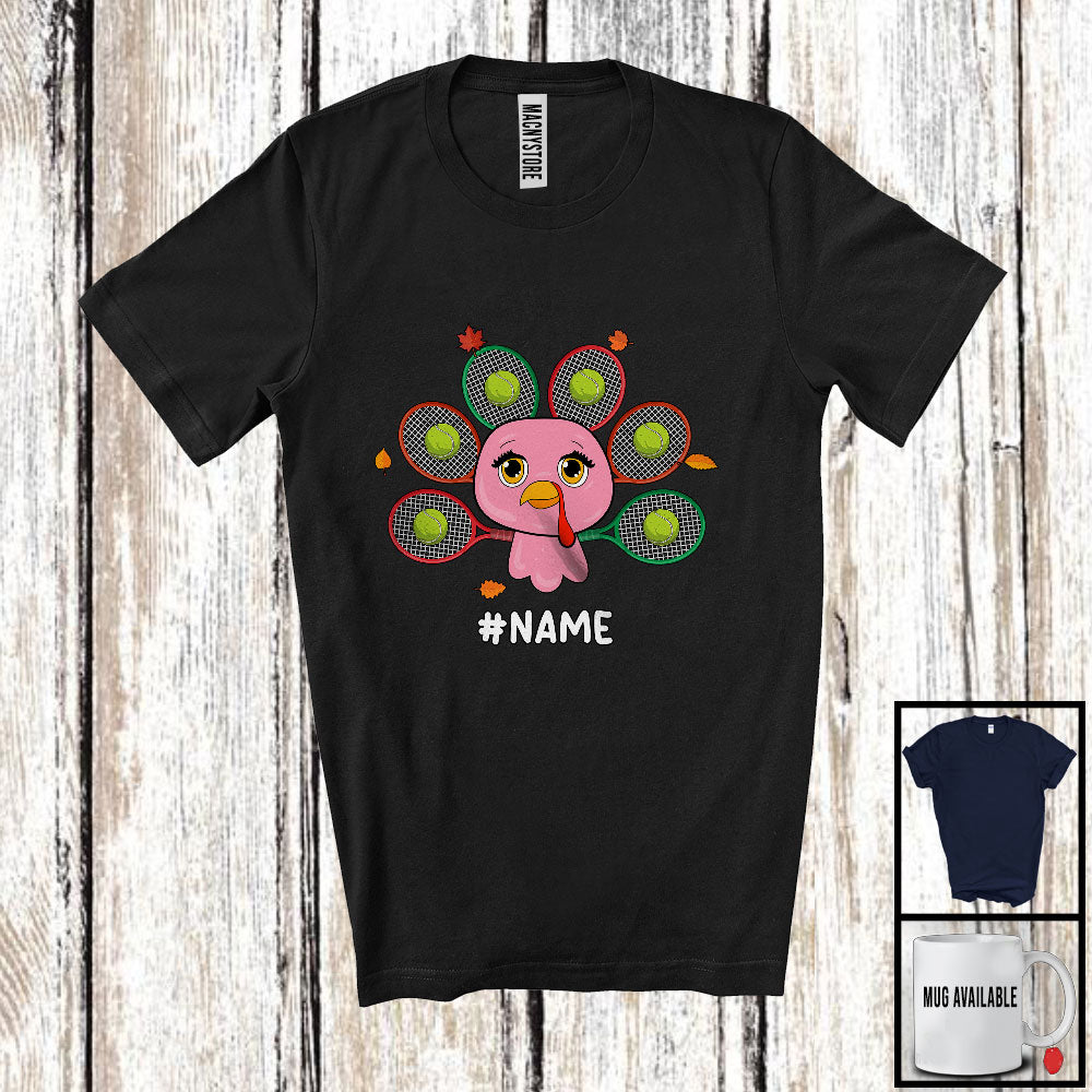 new MacnyStore - Personalized Custom Name Cute Turkey Tennis Tail; Joyful Thanksgiving Sport Player Team T-Shirt – Macnystore