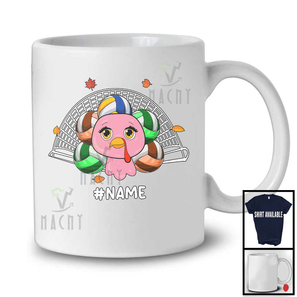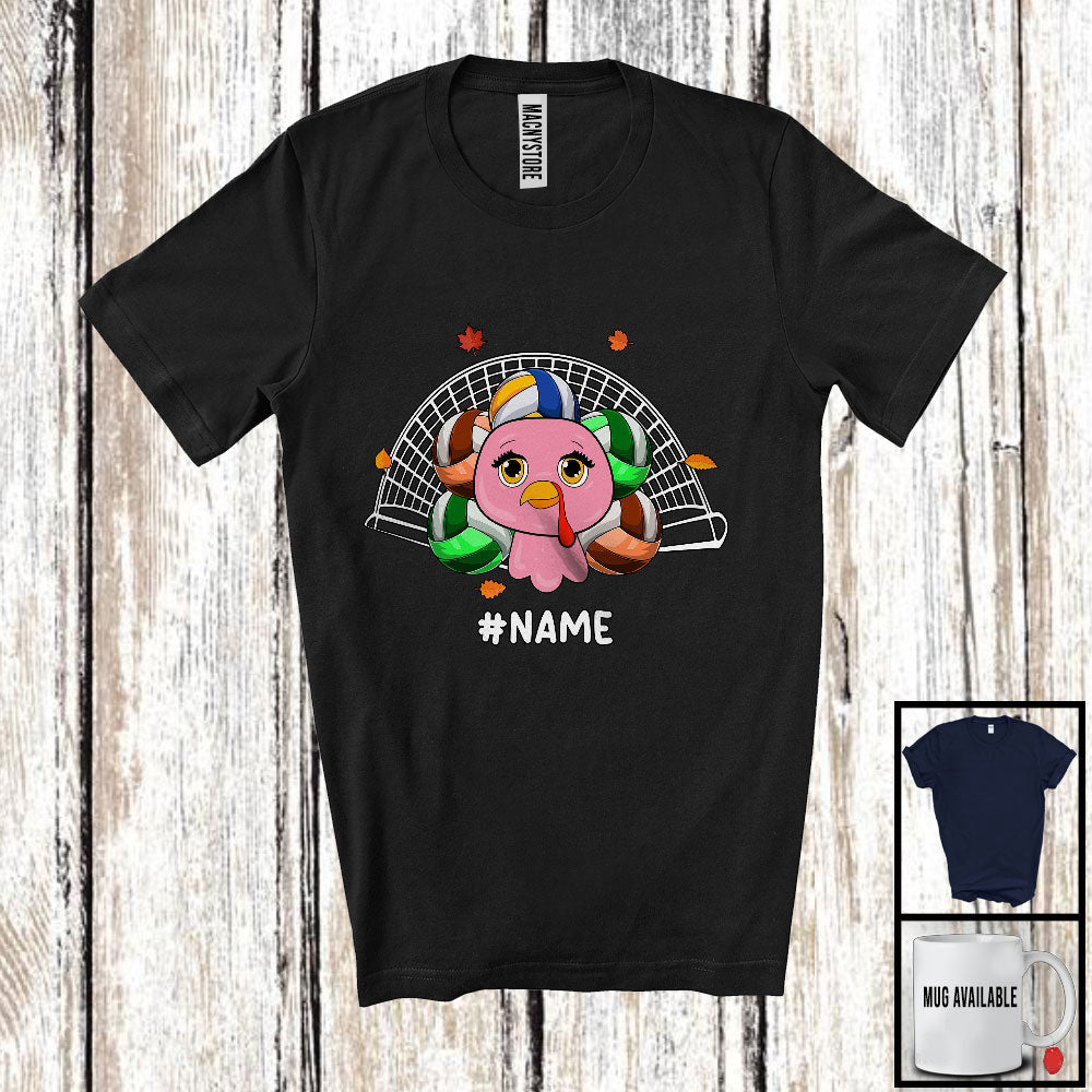 Personalized Custom Name Cute Turkey Volleyball Tail; Joyful Thanksgiving Sport Player Team T-Shirt