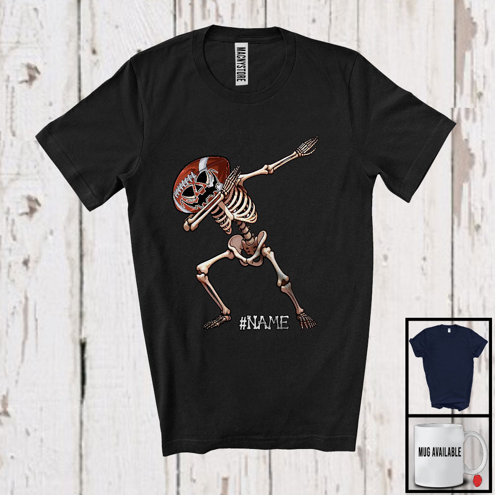 new MacnyStore - Personalized Custom Name Dabbing Football Skeleton, Cheerful Halloween Sport Player Team T-Shirt – Macnystore
