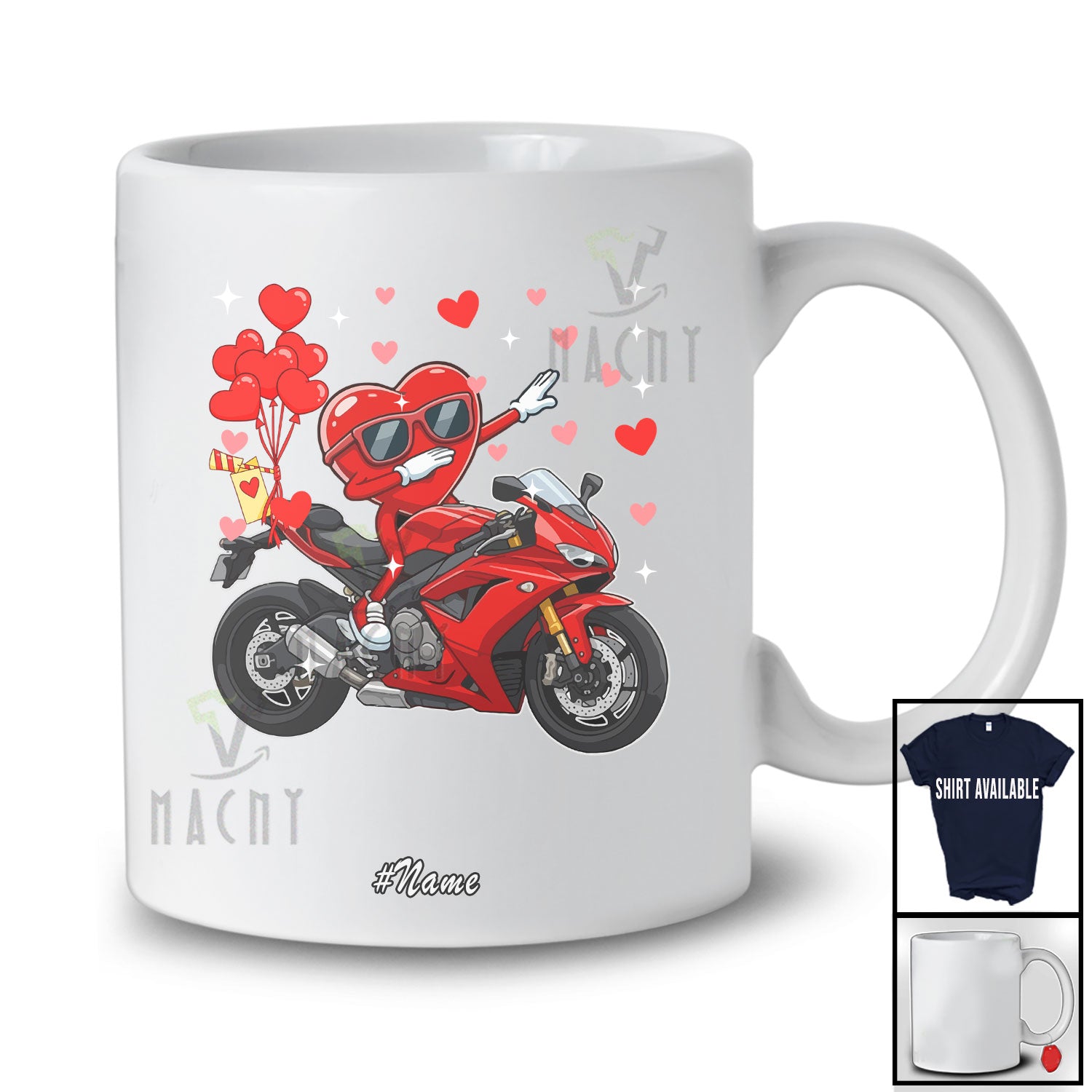 new MacnyStore - Personalized Custom Name Dabbing Heart Riding Motorbike; Amusing Valentine Boys Men Rider T-Shirt – Macnystore