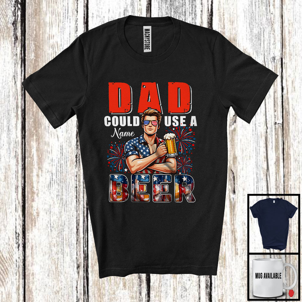 Personalized Custom Name Dad Could Use A Beer, Happy 4th Of July Drinking, Patriotic Family T-Shirt