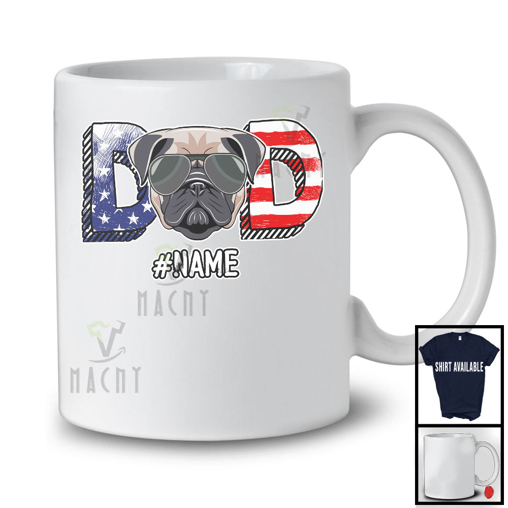 Personalized Custom Name Dad, Lovely 4th Of July Father's Day Pug, Patriotic Family T-Shirt. This cotton t-shirt is a durable staple product with a classic fit. One of the most popular items, it has a relaxed style made for everyday and casual wear.