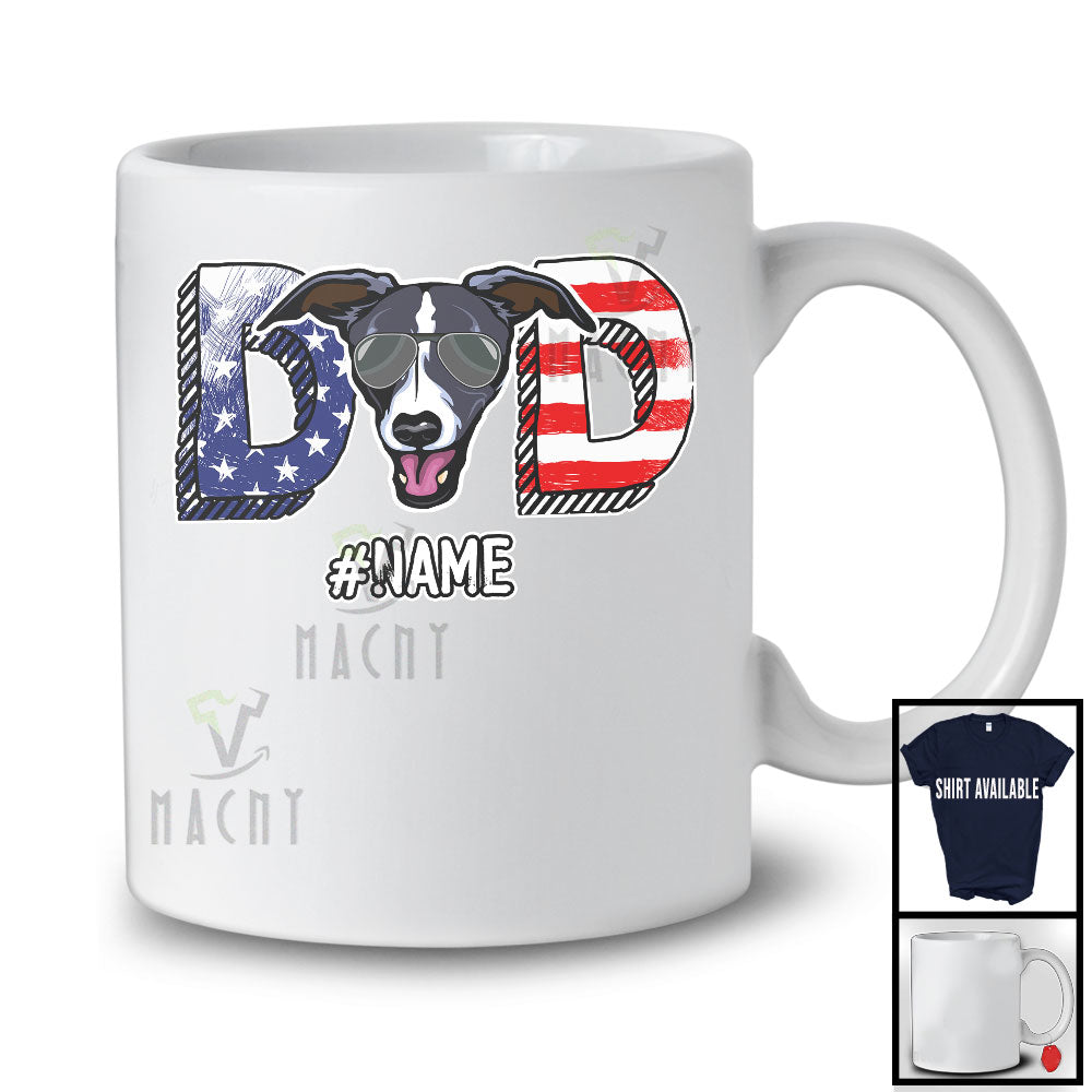 Personalized Custom Name Dad, Lovely 4th Of July Father's Day Whippet, Patriotic Family T-Shirt. This cotton t-shirt is a durable staple product with a classic fit. One of the most popular items, it has a relaxed style made for everyday and casual wear.