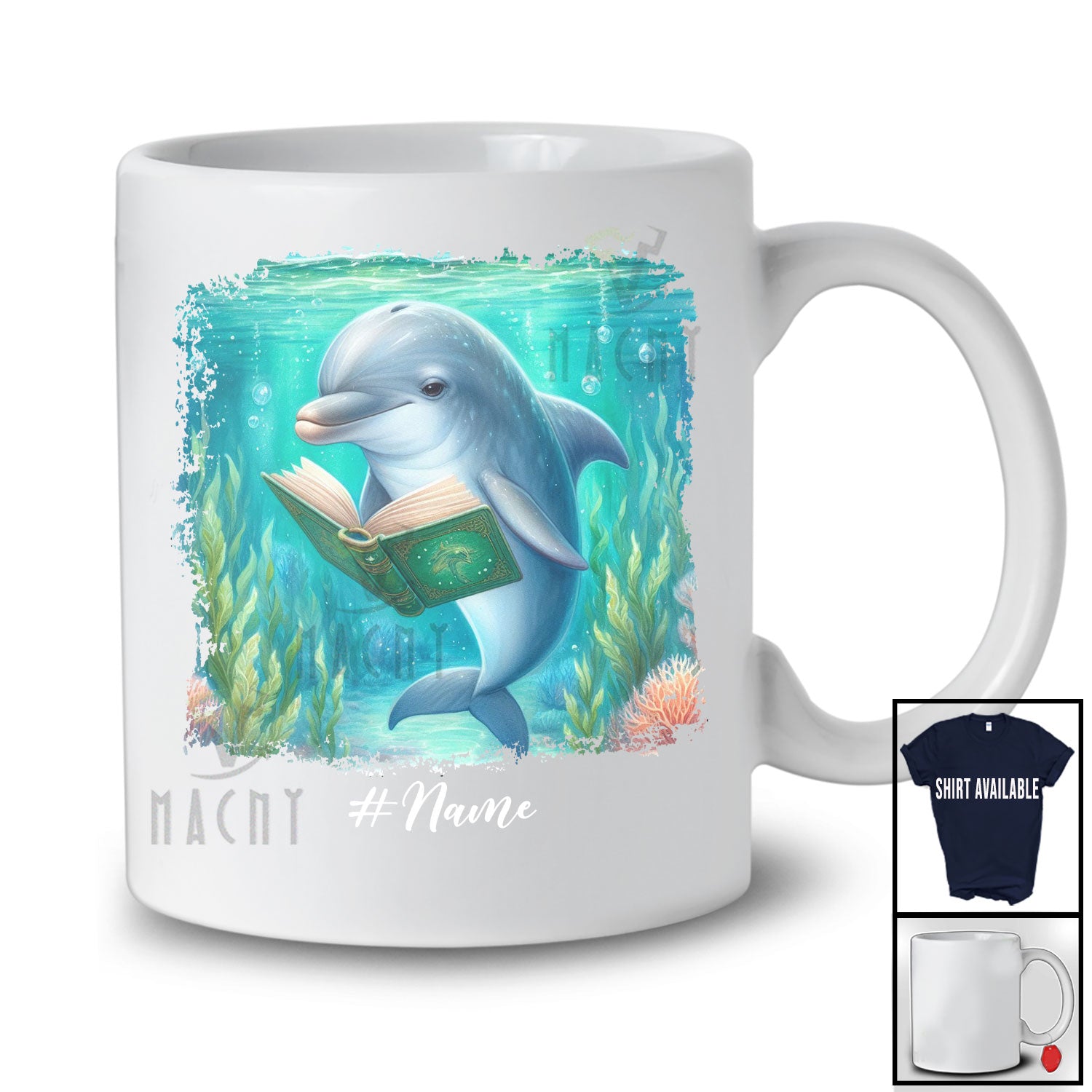 Personalized Custom Name Dolphin Reading Book; Lovely Teacher Librarian Book Nerd; Sea Animal T-Shirt
