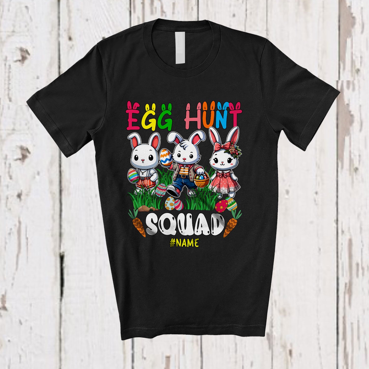 This Personalized Custom Name Egg Hunt Squad; Joyful Easter Three Bunnies With Easter Basket Egg T-Shirt is great idea gift for your family, friends in this birthday, christmas, mother's day, father's day, patrick's day or any holiday.