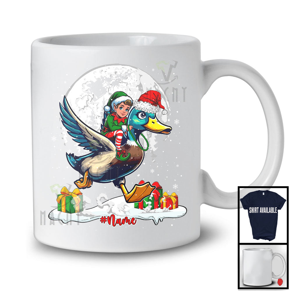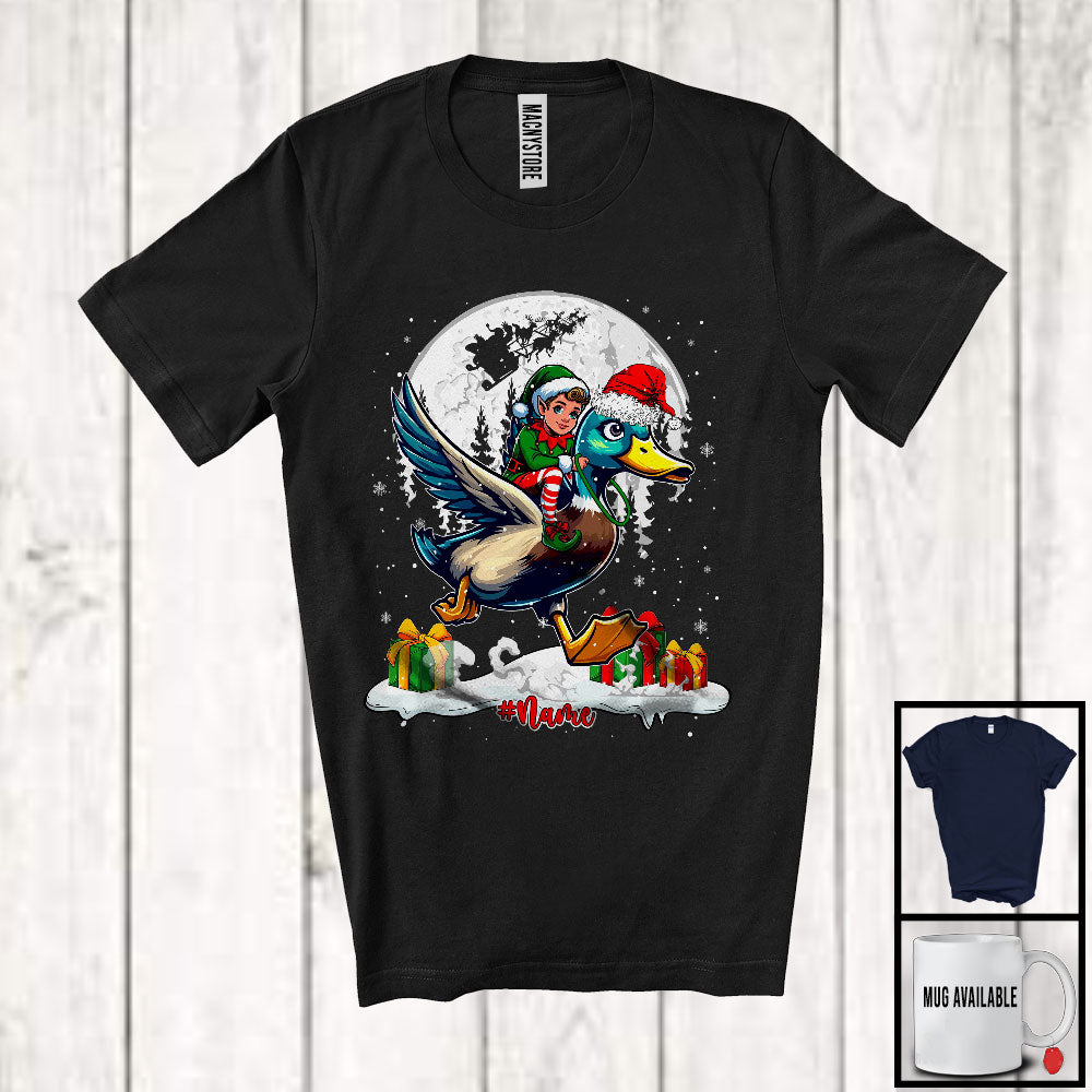 new MacnyStore - Personalized Custom Name Elf Riding Duck Santa; Cheerful Christmas Snowing; Animal Farmer T-Shirt – Macnystore