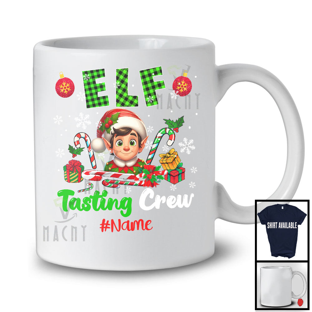 new MacnyStore - Personalized Custom Name Elf Tasting Crew; Adorable Christmas Plaid Candy Canes; X-mas Group T-Shirt – Macnystore
