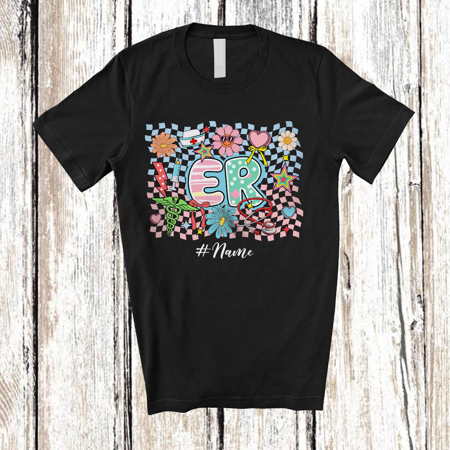 Personalized Custom Name ER; Lovely Back To School Flowers Coquette Nurse Nursing T-Shirt