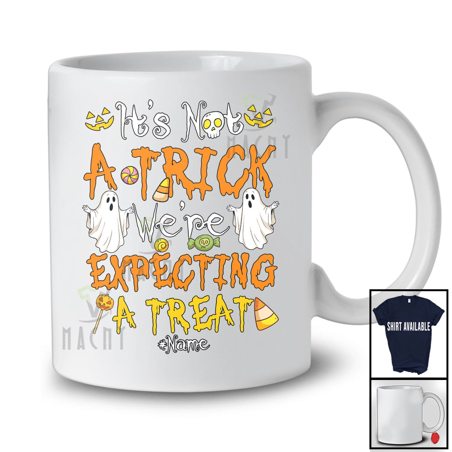 This Personalized Custom Name Expecting A Treat; Humorous Halloween Pregnancy Boo Ghost; Family T-Shirt is great idea gift for your family, friends in this birthday, christmas, mother's day, father's day, patrick's day or any holiday.