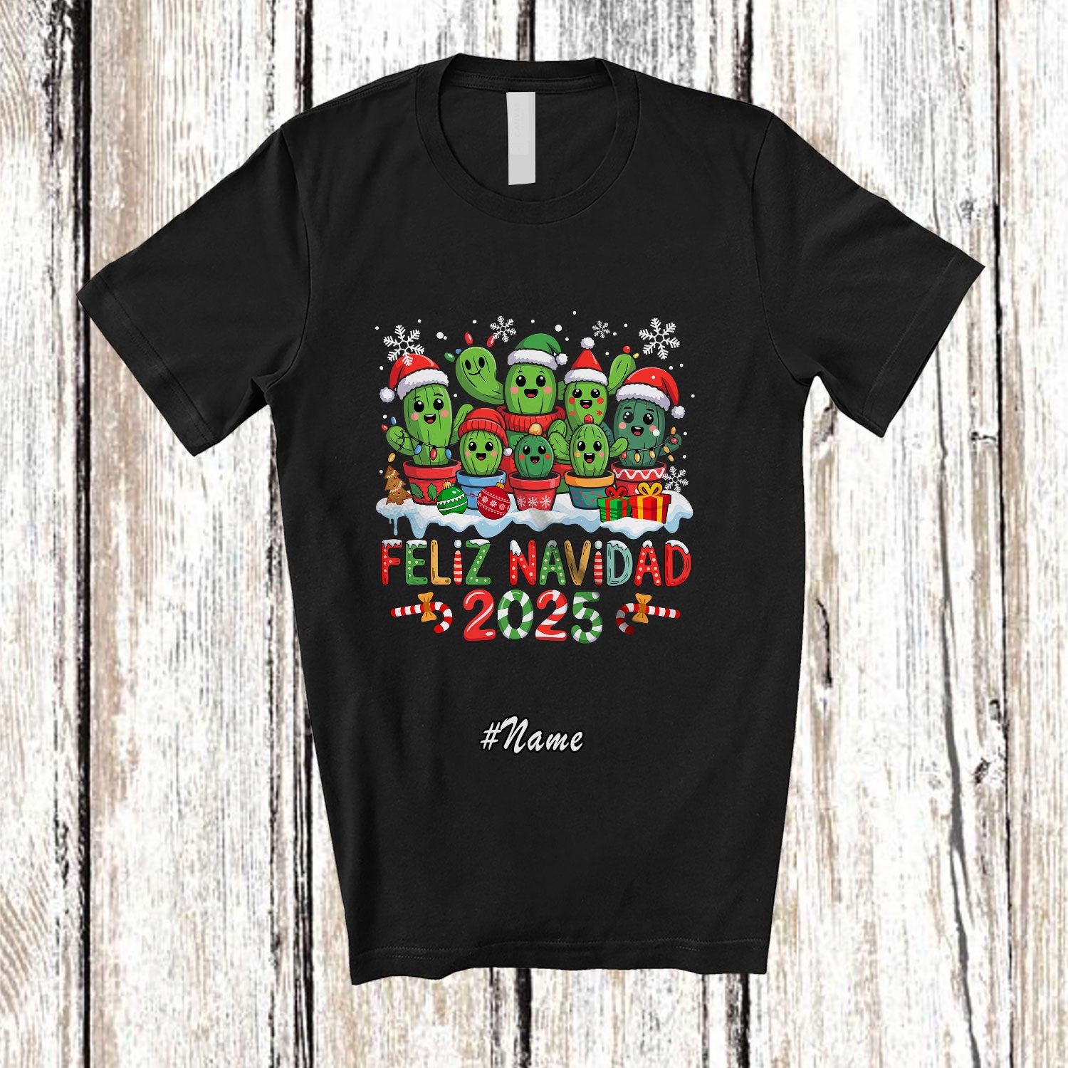 This Personalized Custom Name Feliz Navidad 2025; Lovely Christmas Collection Cactus; Vegan T-Shirt is great idea gift for your family, friends in this birthday, christmas, mother's day, father's day, patrick's day or any holiday.