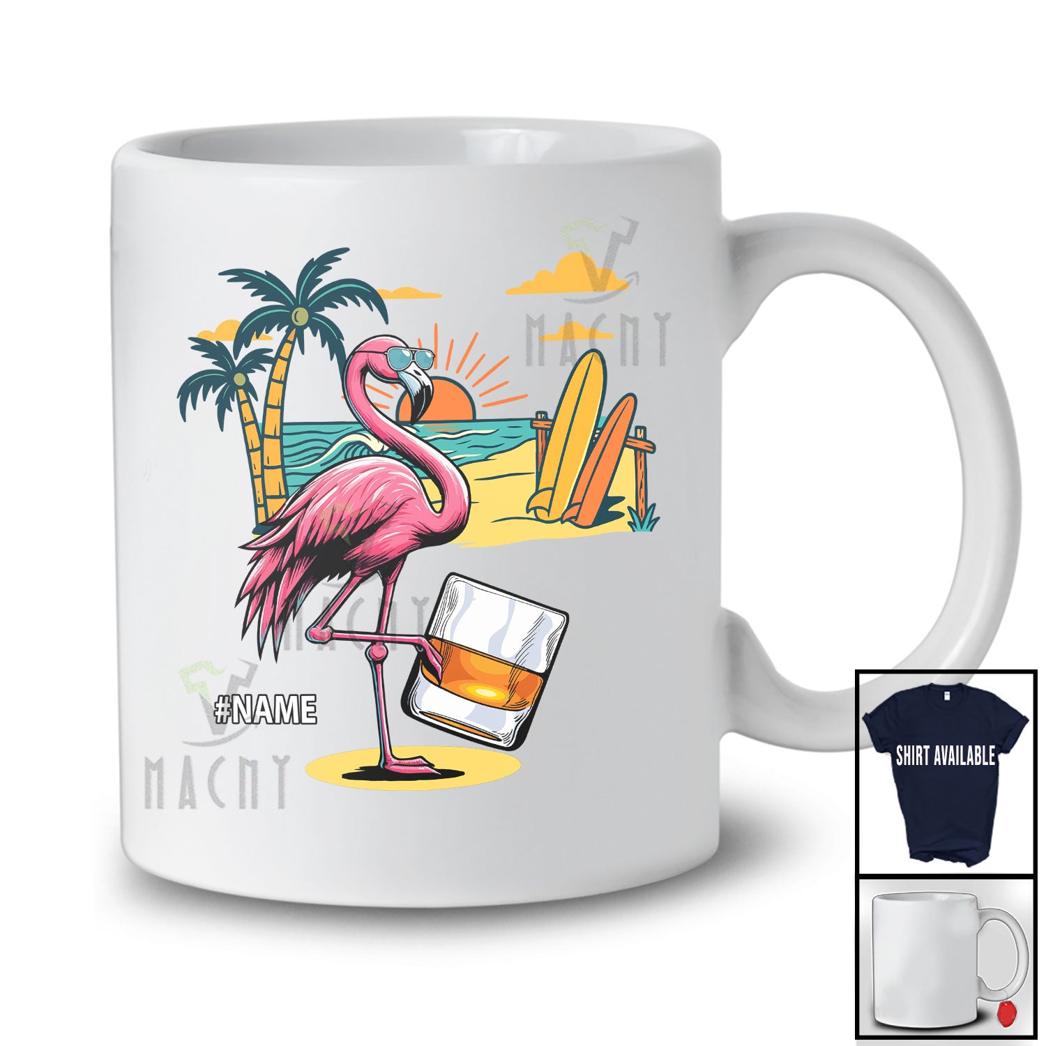 new MacnyStore - Personalized Custom Name Flamingo Drinking Rum; Cheerful Summer Vacation Alcohol Drunker T-Shirt – Macnystore