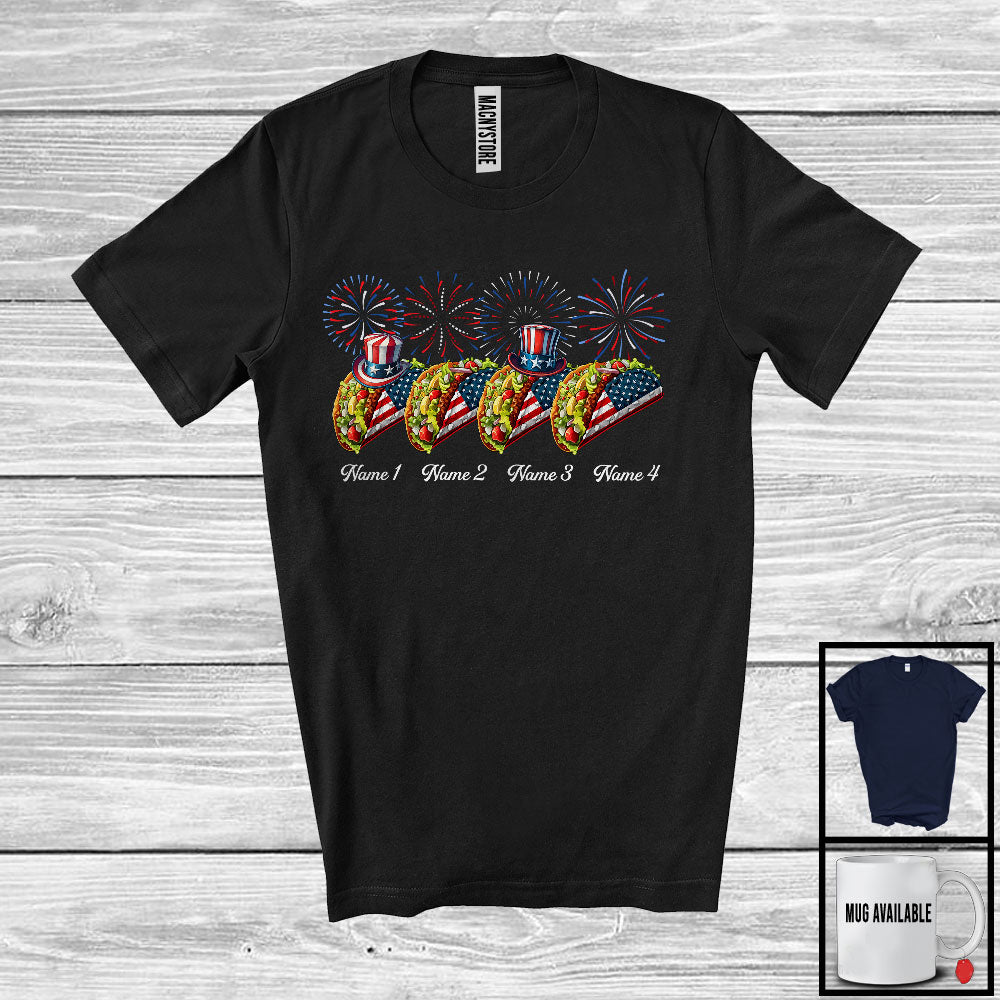Personalized Custom Name Four Taco, Lovely 4th Of July Fireworks, Food Patriotic Group T-Shirt