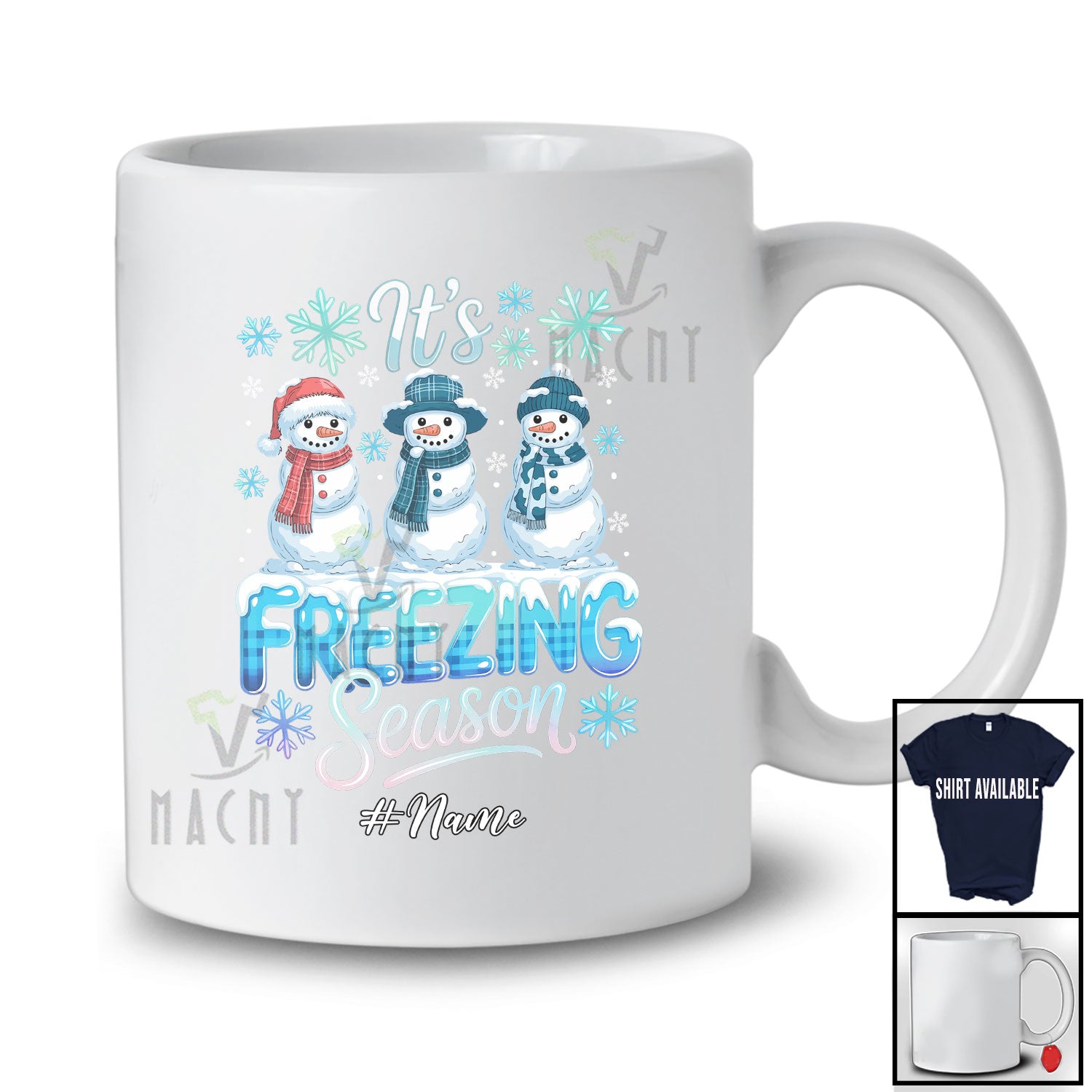 • Personalized Custom Name Freezing Season; Amazing Christmas Cold Winter Three Snowman T-Shirt. This cotton t-shirt is a durable staple product with a classic fit. One of the most popular items, it has a relaxed style made for everyday and casual wear.