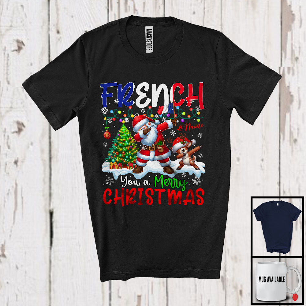 Personalized Custom Name French You A Merry Christmas; Joyful Dabbing Santa; French Flag T-Shirt