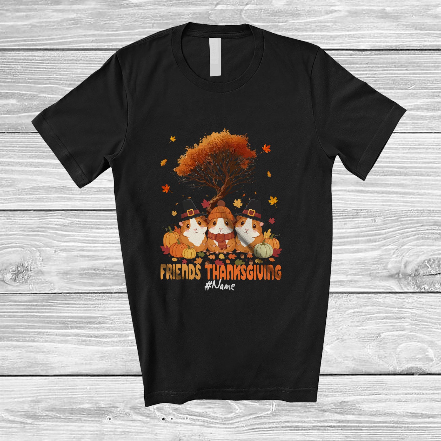 Personalized Custom Name Friends Thanksgiving; Lovely Fall Autumn Tree Three Three Guinea Pig T-Shirt. This cotton t-shirt is a durable staple product with a classic fit. One of the most popular items, it has a relaxed style made for everyday and casual wear.